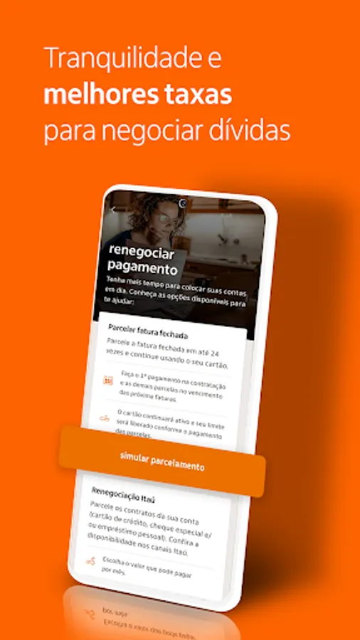 Renegotiate the total balance on your card or, before paying your bill in installments, simulate the installment plan and have more time to catch up on your bills.
