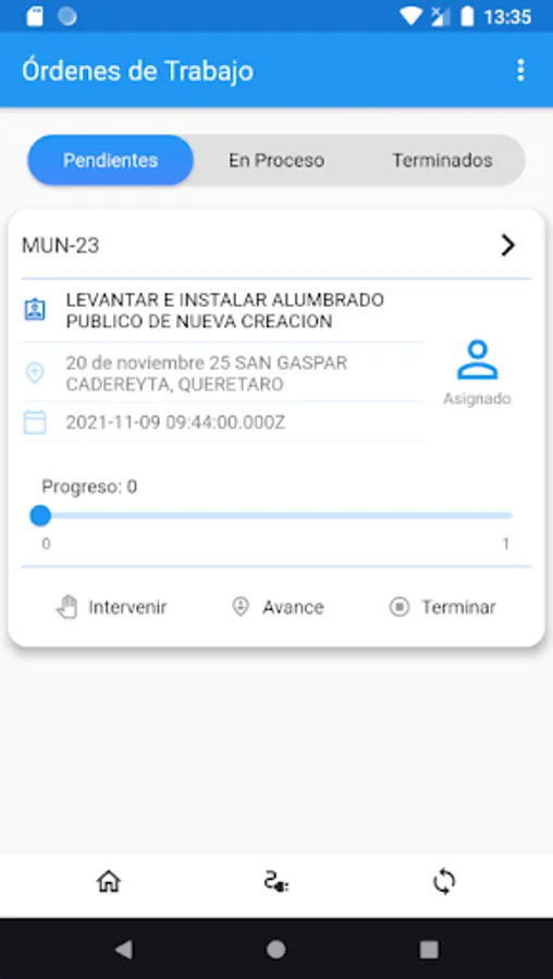 It automates the sequence of actions or tasks for the execution of the maintenance process of the electrical network, which allows the App to receive a Work Assignment and track each stage such as geolocating the service point, taking photographic evidence before and later, as well as capturing the technical details of the service.
