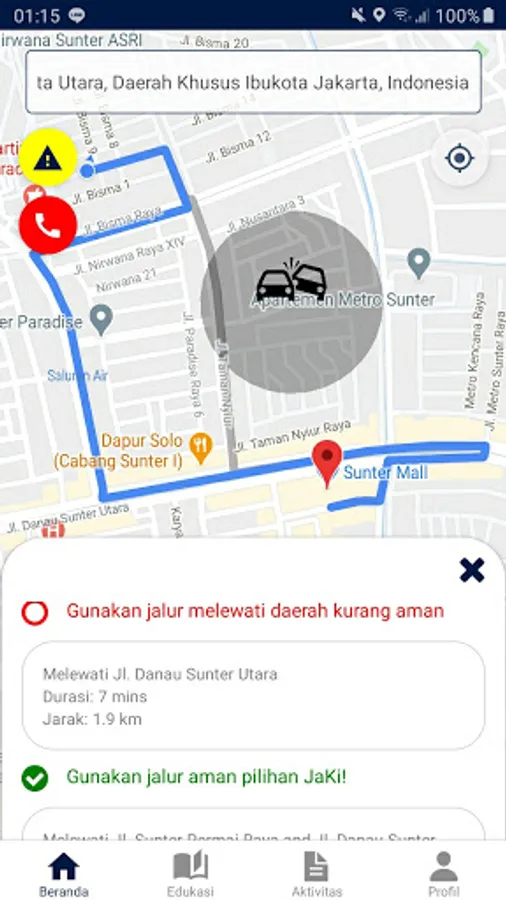 JaKi application is a traffic safety platform that intended helping people by showing and rerouting their navigation from blackspots and troublespots of their map. In this app, there are also educational informations in a form of videos, articles, etc. Furthermore, you could also share information if your current location is a troublespot. You could also send emergency signal to our database whenever you have a dangerous situation.