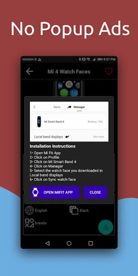 That's it! You don't need to open Mi Fit application to install your new watch face. Just press install inside of our application and wait for the synchronization to finish.