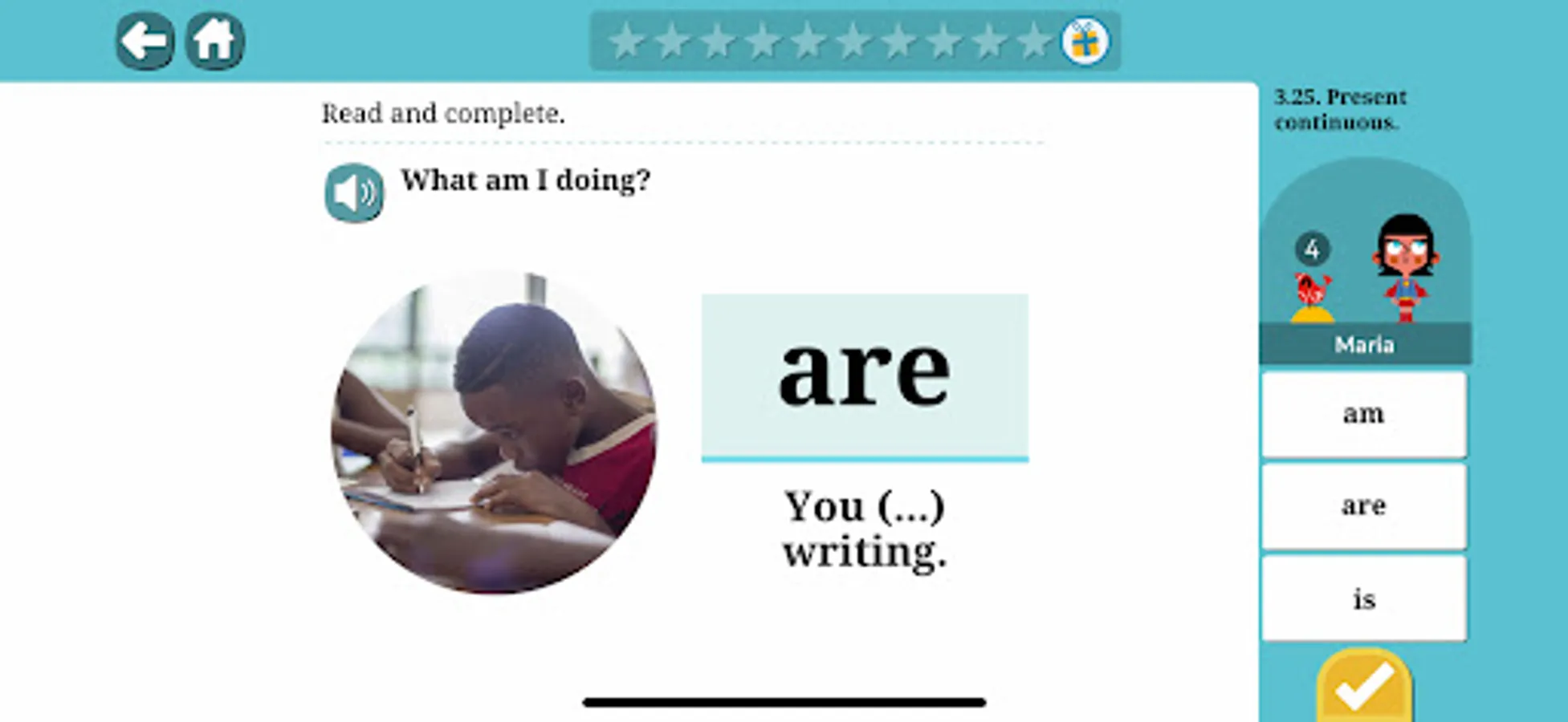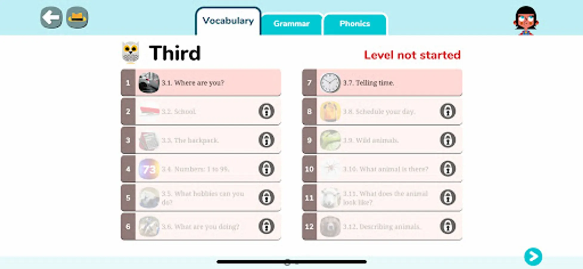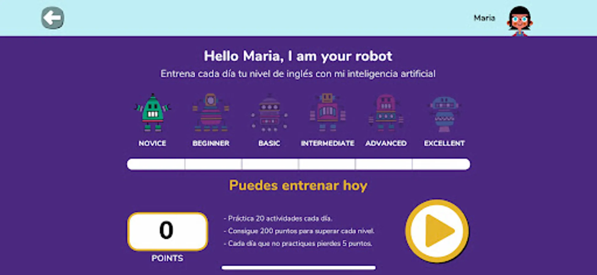 An automated assistant trains the boys and girls daily to gradually improve their level of English through 20 different questions per session. Record the successes, evaluate the errors and propose to the student content that needs to be reinforced. In this way, it is verified that they keep the basic knowledge acquired previously "in shape" and that they consolidate those that they are currently studying.
