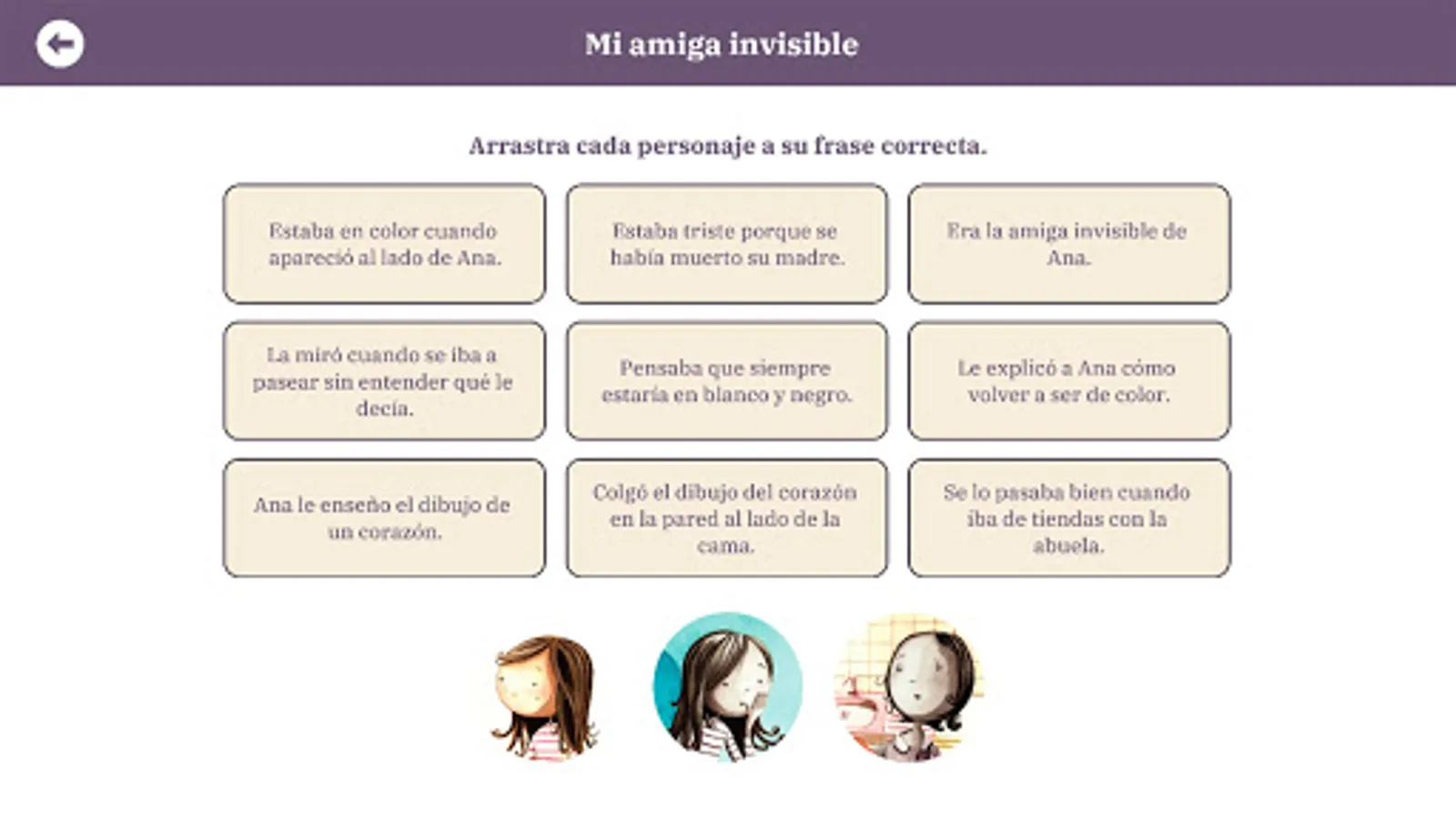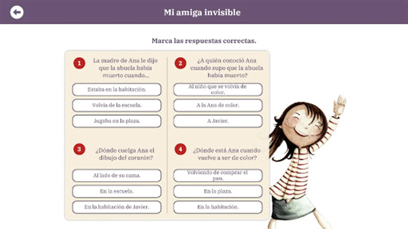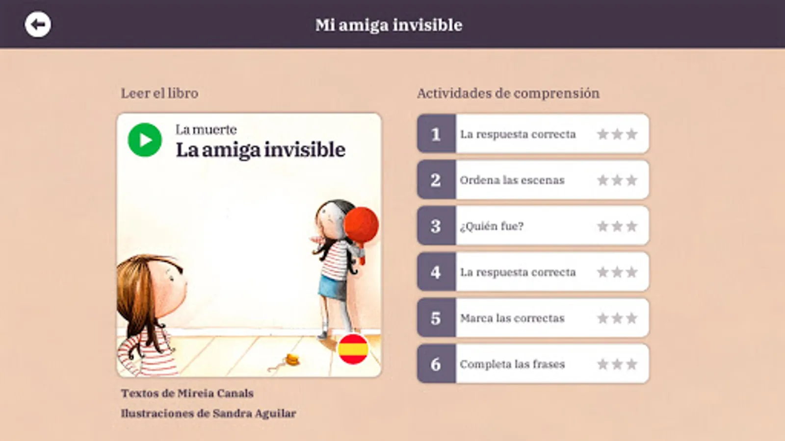 Además cada cuento Incluye seis ejercicios interactivos destinados a evaluar y practicar la comprensión lectora de los alumnos de los primeros cursos de educación primaria. Los cuentos disponen también de versión en audio. Se puede activar la locución de los textos página a página narrada por locutores nativos en español, catalán e inglés.