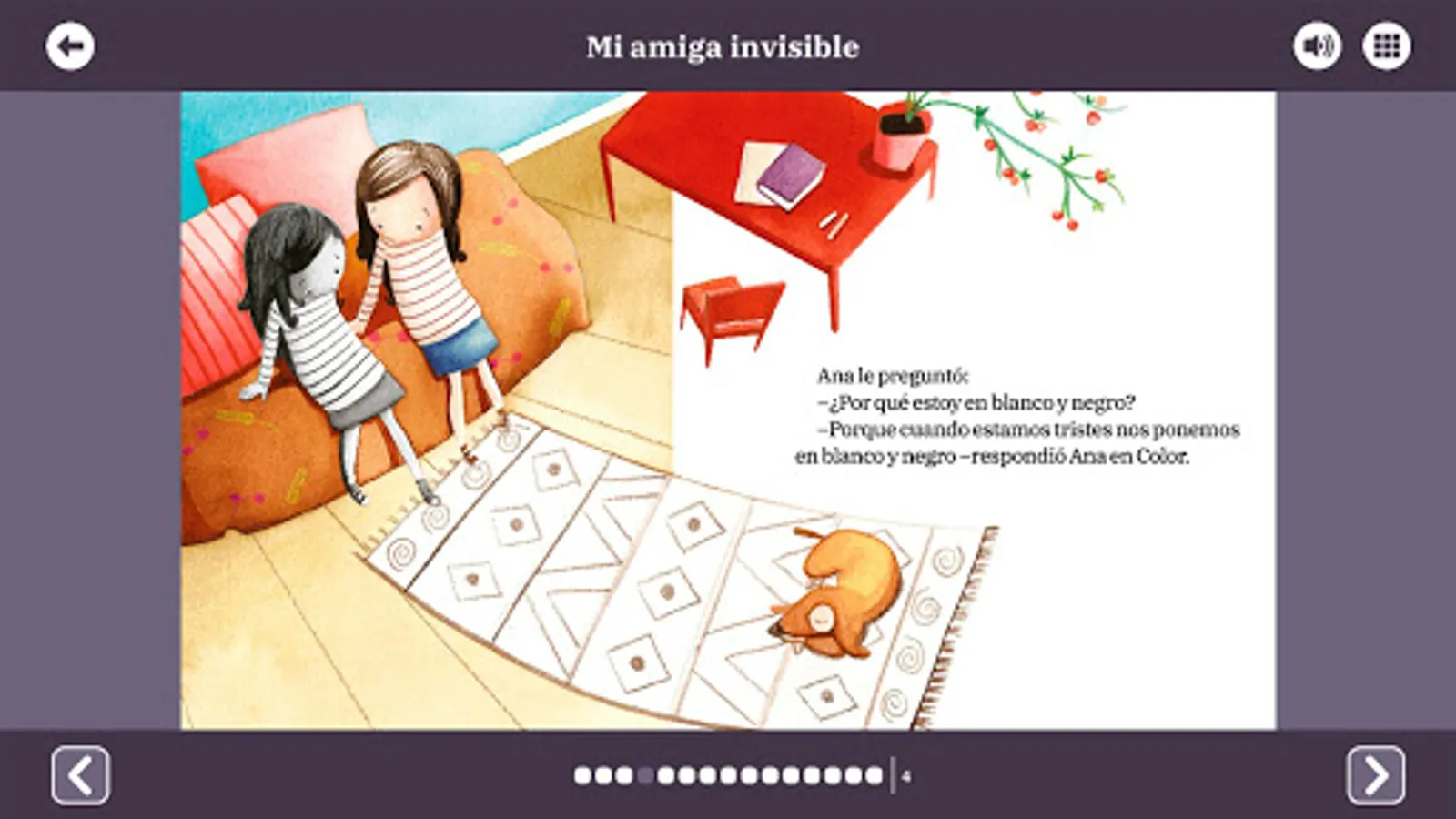 • Ana está sufriendo, su abuela ha muerto y ella se ha vuelto de color blanco y negro. Ayudada por su amiga invisible, la pena que sufre Ana se mezclará con los recuerdos tan agradables que conserva de su abuela.