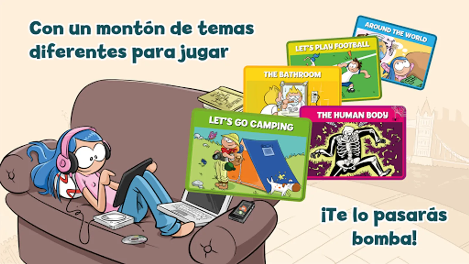 With fun themes we want playing English to be an experience that crystallizes, that the repetition of words strengthens your memory and that narrations help you to recognize that peculiar way that English people have of pronouncing some words. You will see how easy English is going to be from now on.