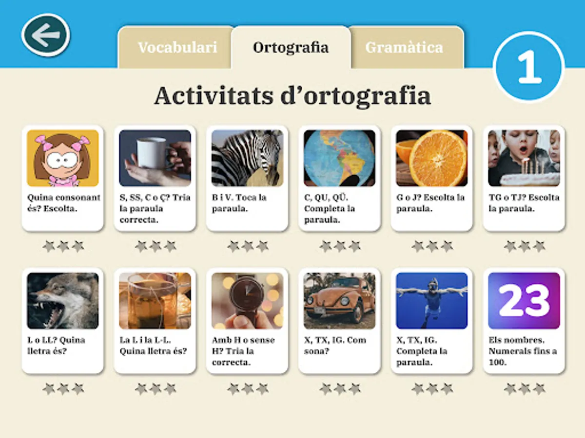 The app A world of words has been planned for boys and girls aged 8 to 14 to expand their vocabulary and strengthen their grammar and spelling skills in Valencian in a progressive and engaging way. It allows you to practice the contents of the official Primary curriculum and consolidate your skills to start Secondary. It includes 90 fun vocabulary games, 108 interactive spelling activities and 108 grammar and lexicography activities, with more than 2,000 different words, to practice and assimilate the essential content of the Valencian subject. When necessary, the exercises include clues with explanations, to understand how each activity is solved.