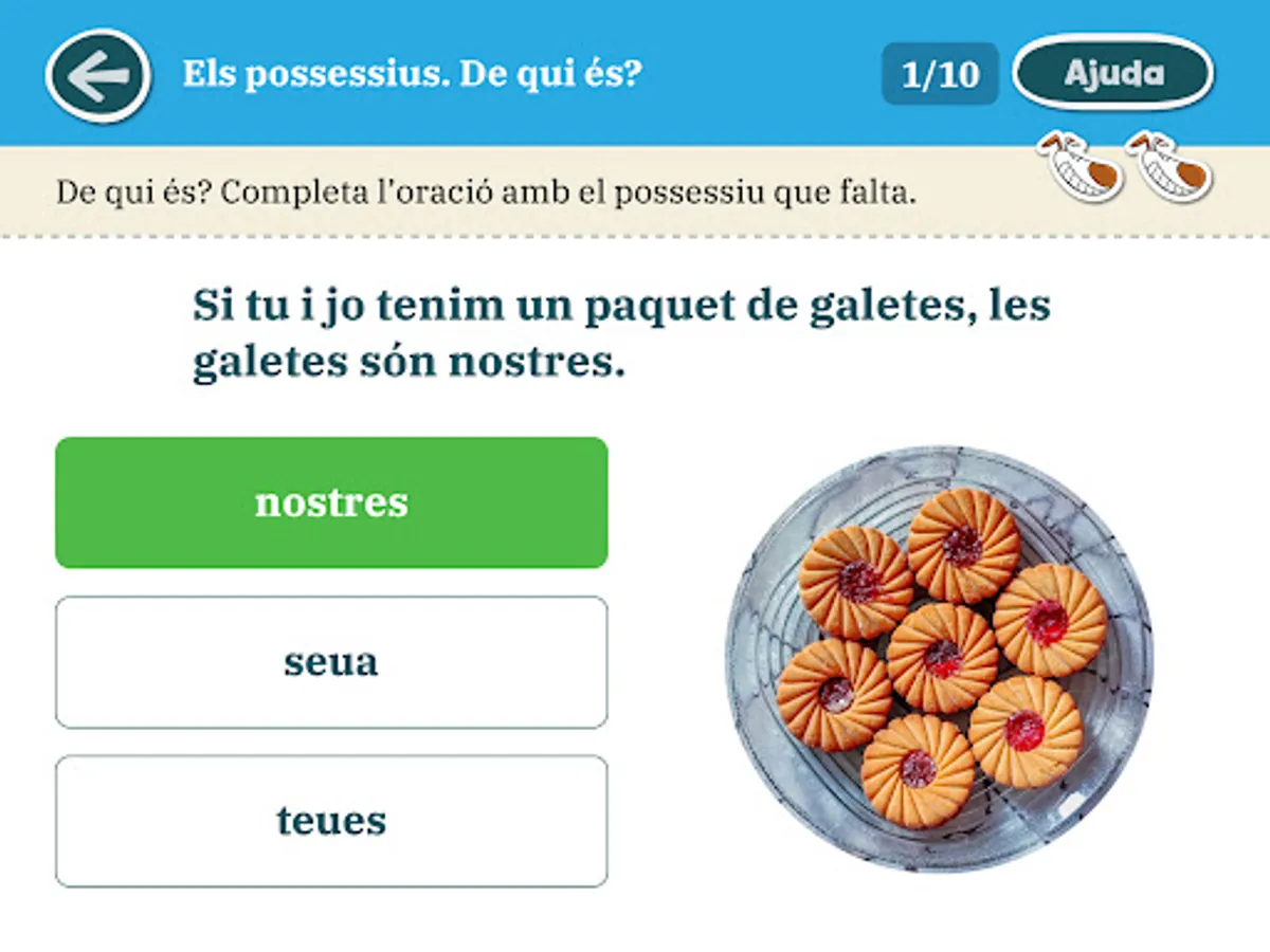 The app is particularly effective for those boys and girls who do not have Valencian as their native language, as it invites them to approach the language in an entertaining way and its contents allow each child to practice and improve your own pace with 9 topics of increasing difficulty. Its gamification and Nacho Gallach's funny illustrations motivate boys and girls to gain more confidence and deepen their knowledge of the language.