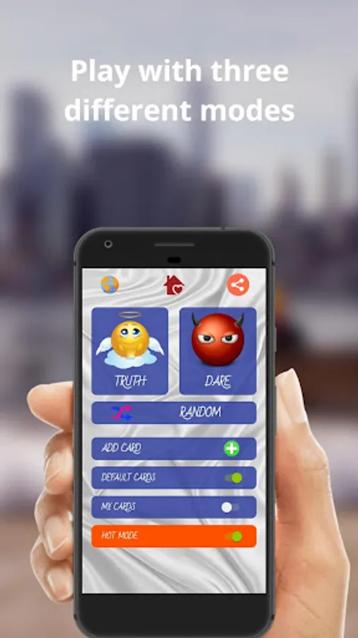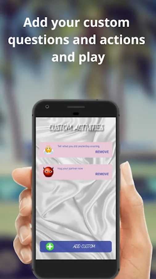 Also you can add your custom questions and actions. You can enable special mode to play only with your custom actions and questions if you wish.