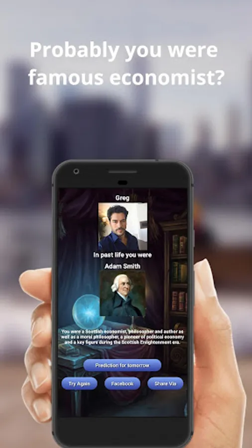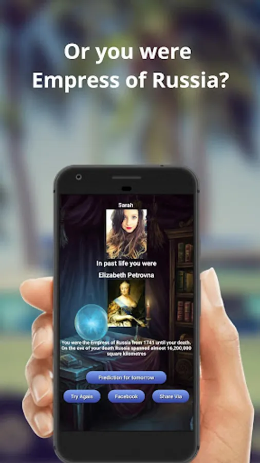 Based on your date of birth, name and photo, the fortuneteller Marma will tell you who you were in a previous life.