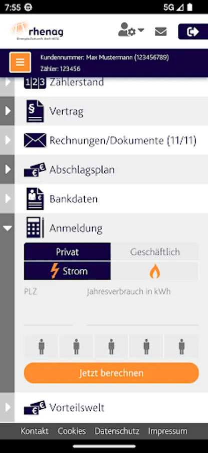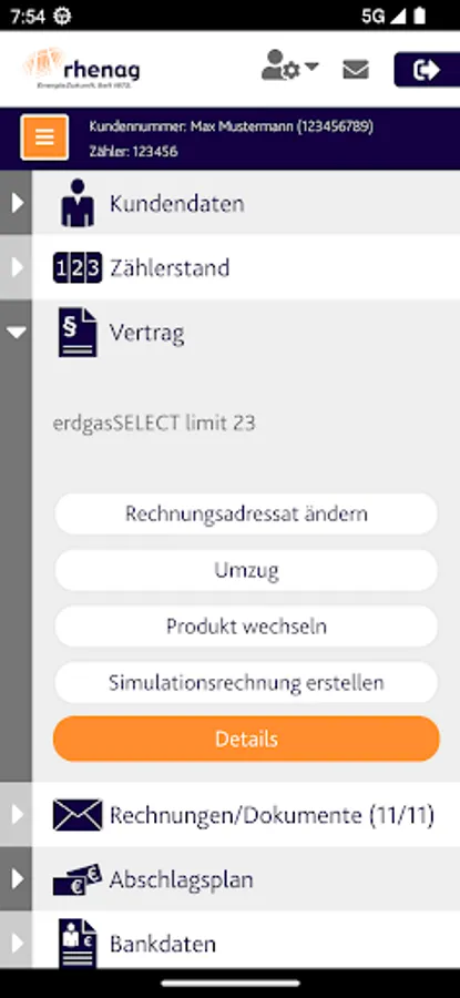 Record your meter reading conveniently and easily with your my rhenag app and use all customer service functions, such as discount adjustments, consumption displays and interim bills, from the rhenag customer portal quickly and easily via your smartphone.