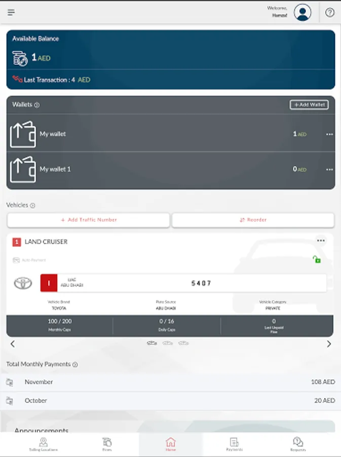 - New user registration service in the Tolling Management System in Abu Dhabi.