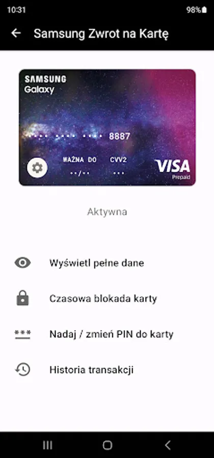 The issuer of the Samsung Card is Planet Pay Sp. z o. o. The card is addressed to participants of the Samsung Return to Card promotion.