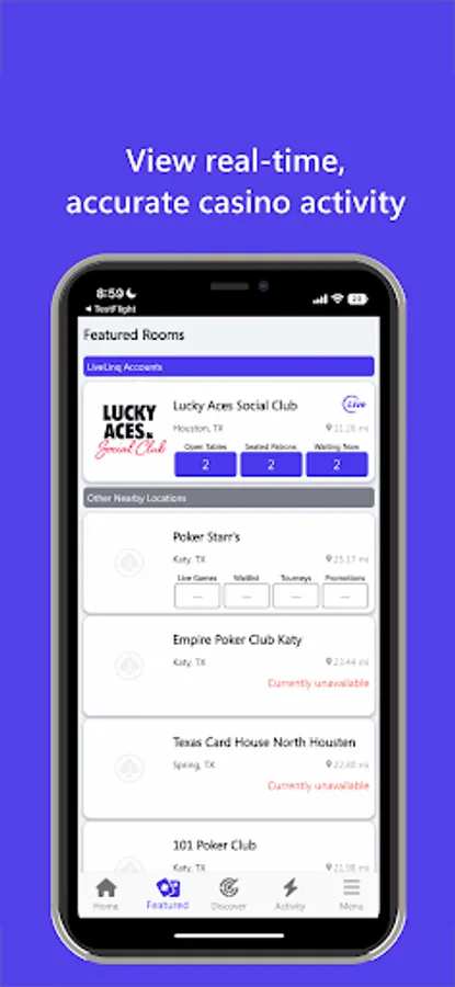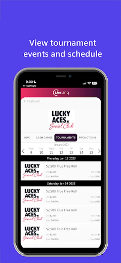 Finding tournaments, cash games, and promotions from all the casinos in your area has never been easier. LiveLinq simplifies the process so you can avoid searching multiple places. Plus, use the waitlist feature to join waitlists before arriving at the casino and skip the waiting.
