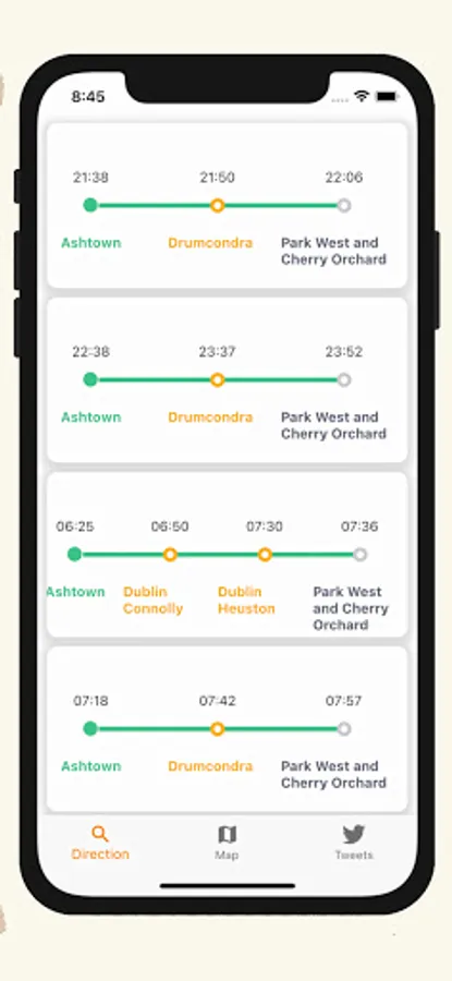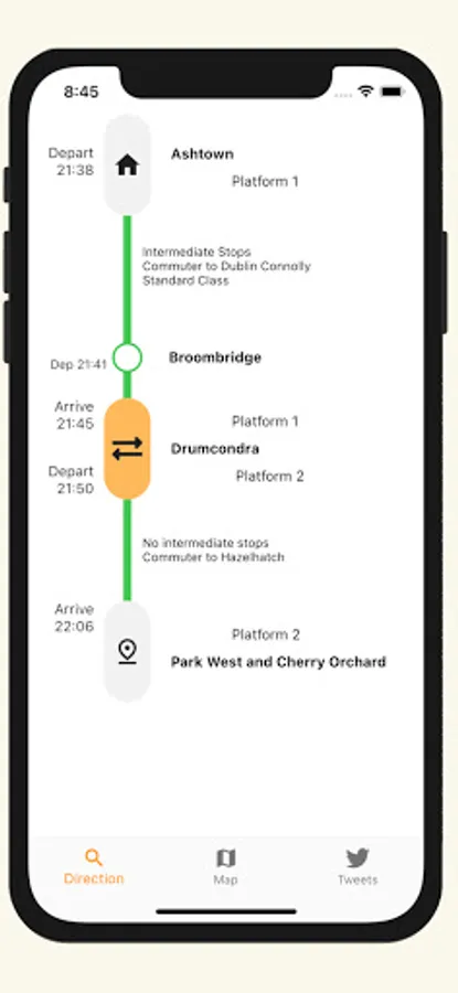 Dublin Rail provides Platform number, Transfer stations and arrival time for each intermediate station