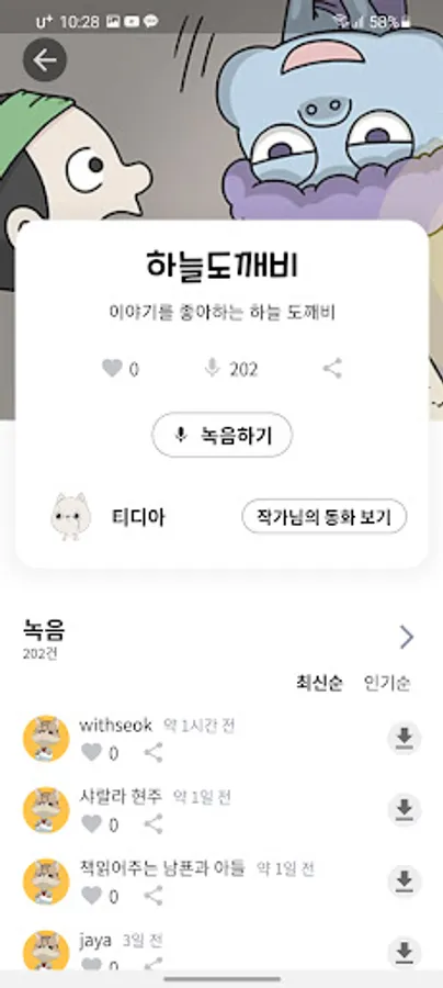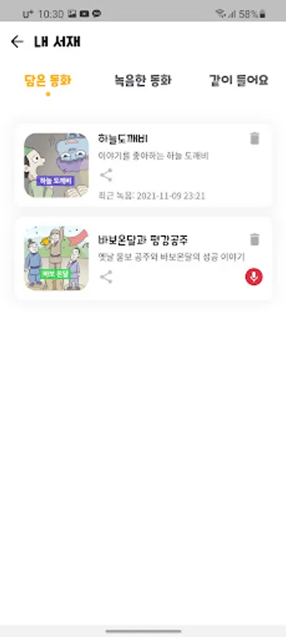 This is an app developed so that a working mom or a working dad can listen to a children's book at any time after recording a storybook from anywhere. In addition, you can record at any time in the Wi-Fi area and download it to your smartphone and listen to it in your library without consuming data.