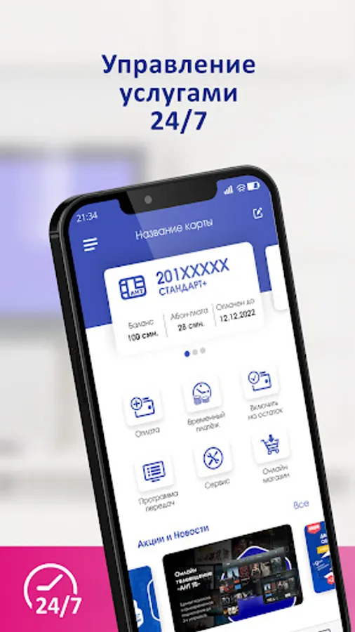 • Added a new service “Include on the balance”. In case of insufficient funds to pay for a month, using this service, you can continue watching your favorite TV channels for exactly as many days and hours as the balance on your card will last;