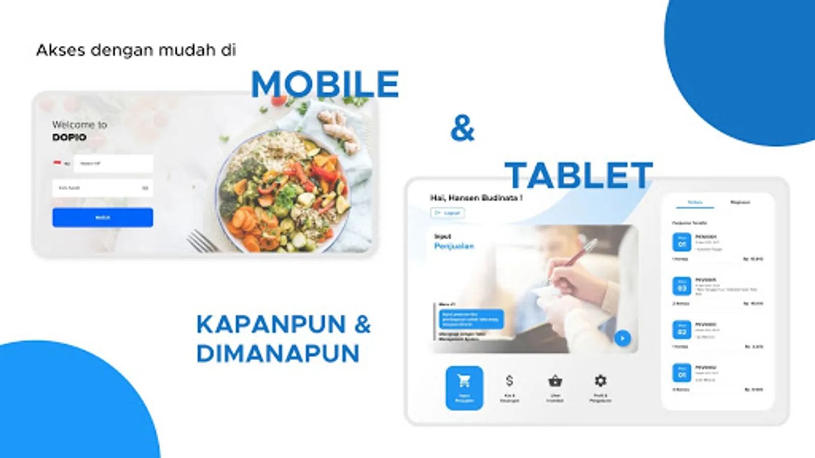 Dopio is suitable for café and restaurant businesses. However, with the various features available in Dopio, it is possible that its use can be applied to other businesses. Dopio can be accessed on all tablets with the Android and iOS operating systems.