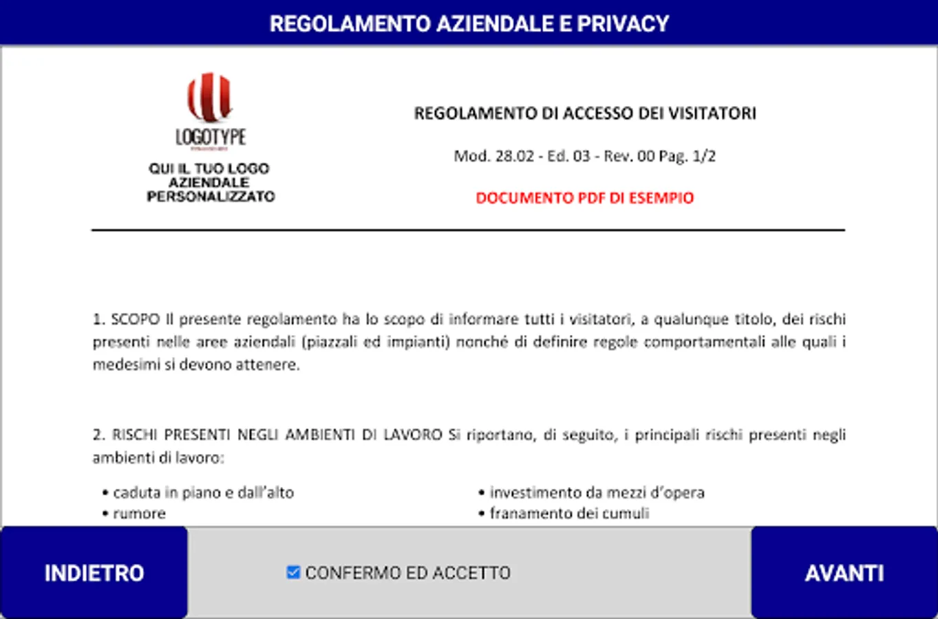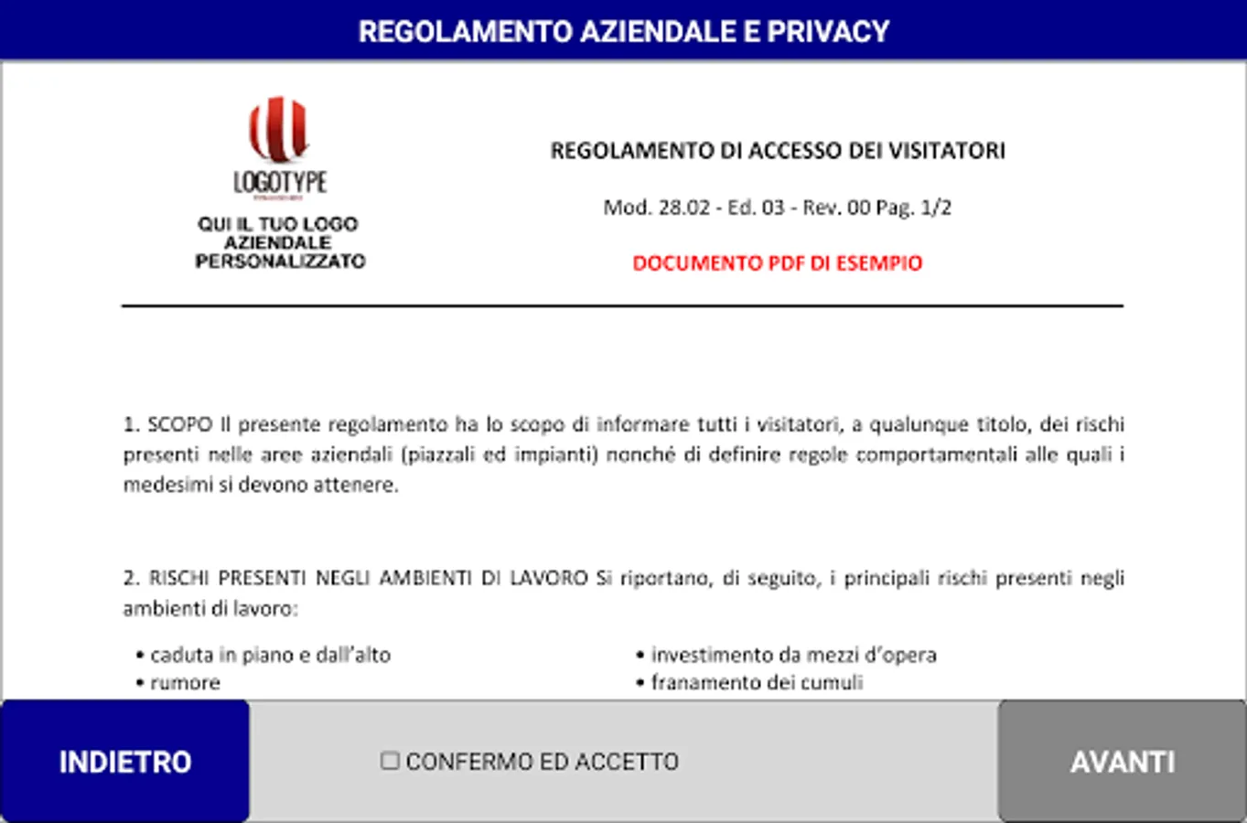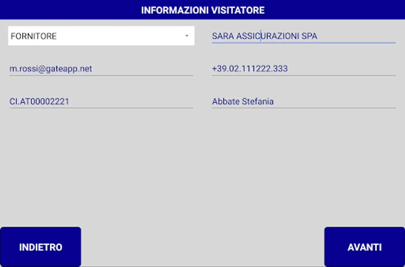 - Collection of Guest information (visitor type, Company, email, Telephone)