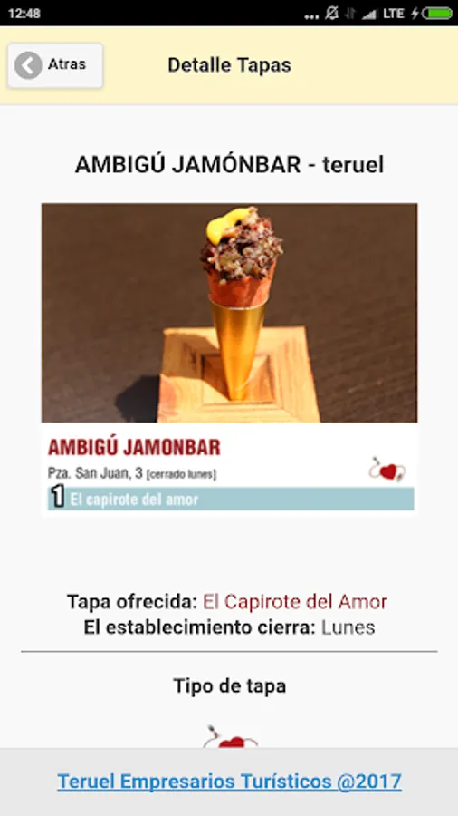 All covers have in common the use of Ham O.D. of Teruel. Also in this edition, the establishment can choose to "destapate" award, proposing a cap tematizada dedicated to "Love, Passion and Eroticism". Also depending on setting the cap will be without gluten or adaptable on request, and there will be a special cover for children.