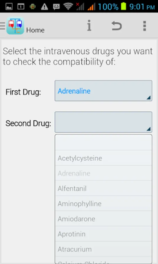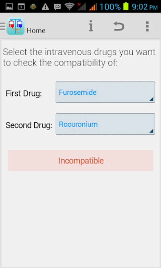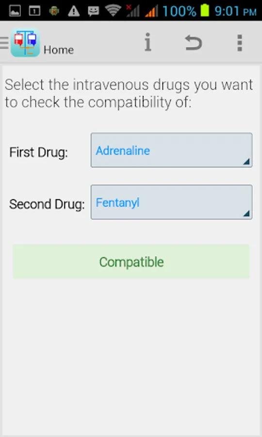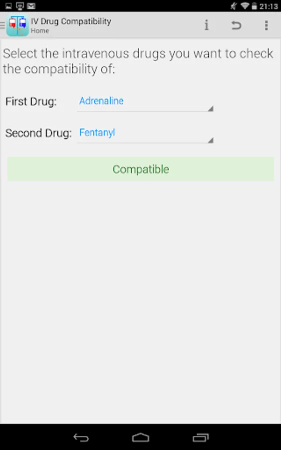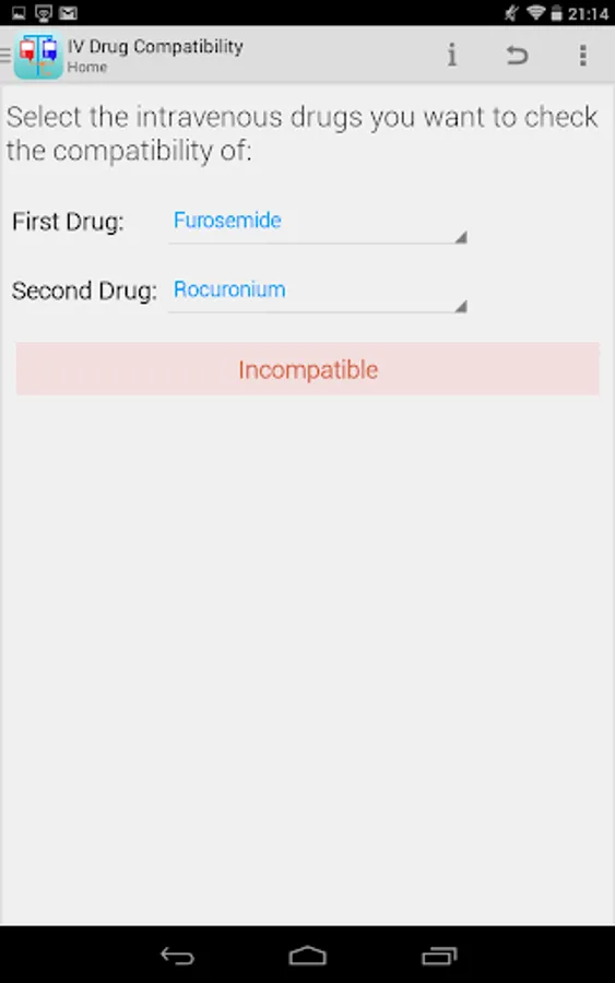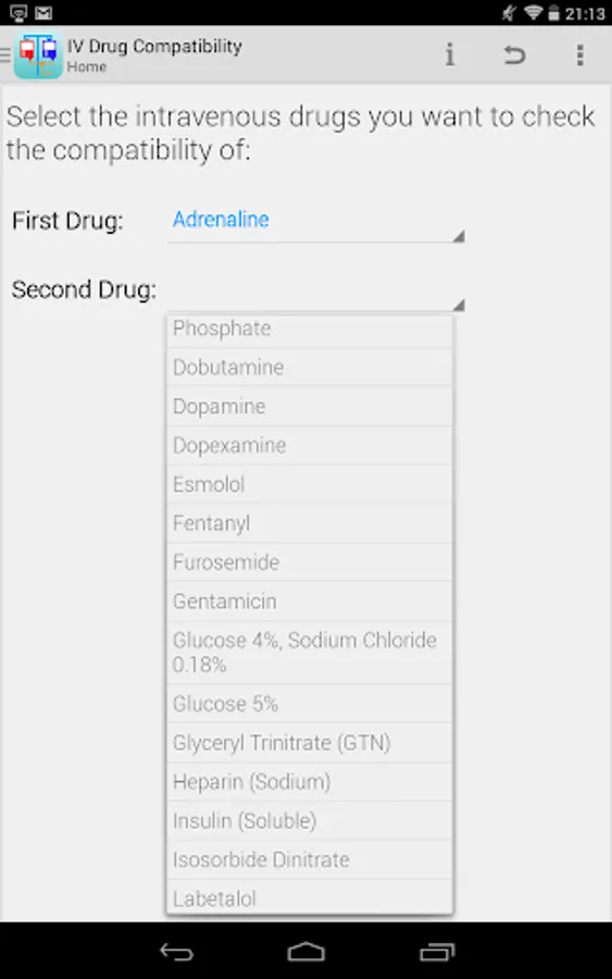 This application provides the healthcare profession with a method of quickly checking the compatibility of any two of the following intravenous drugs at the Y-site: