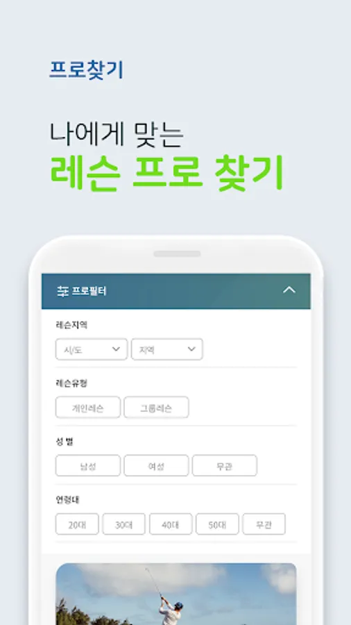 맞춤레슨 등록으로 나의 조건에 맞는 골프레슨 전문가 선택