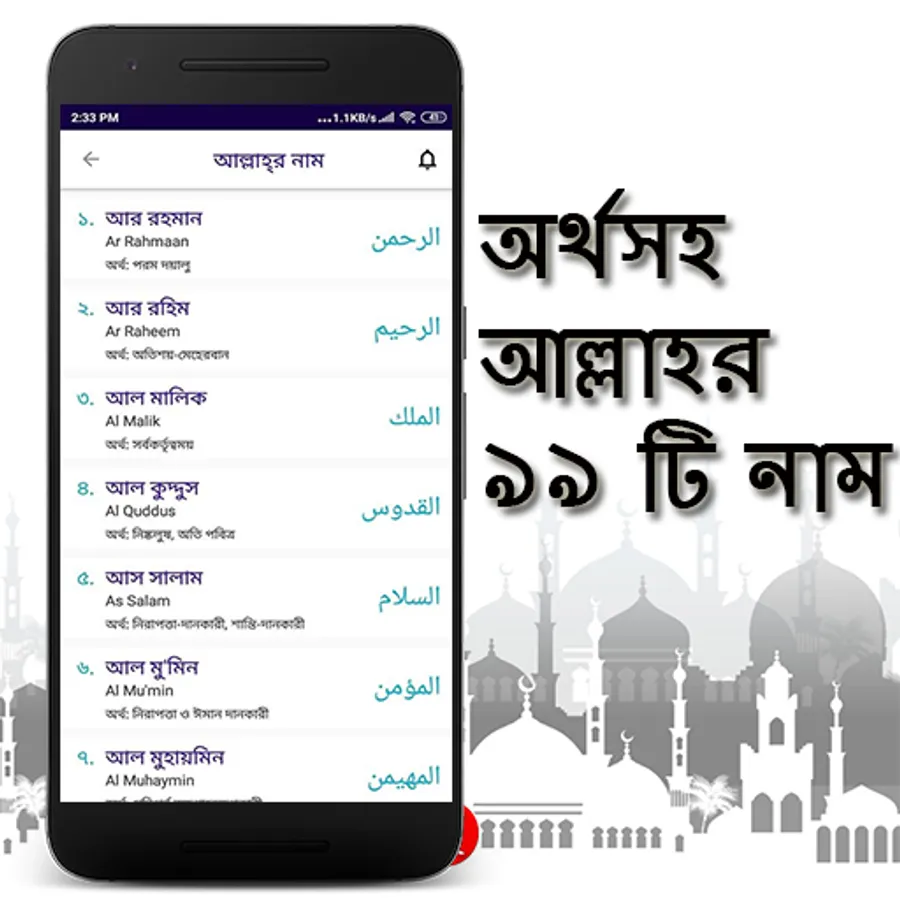৮। অর্থসহ আল্লাহর ৯৯ টি নাম ।