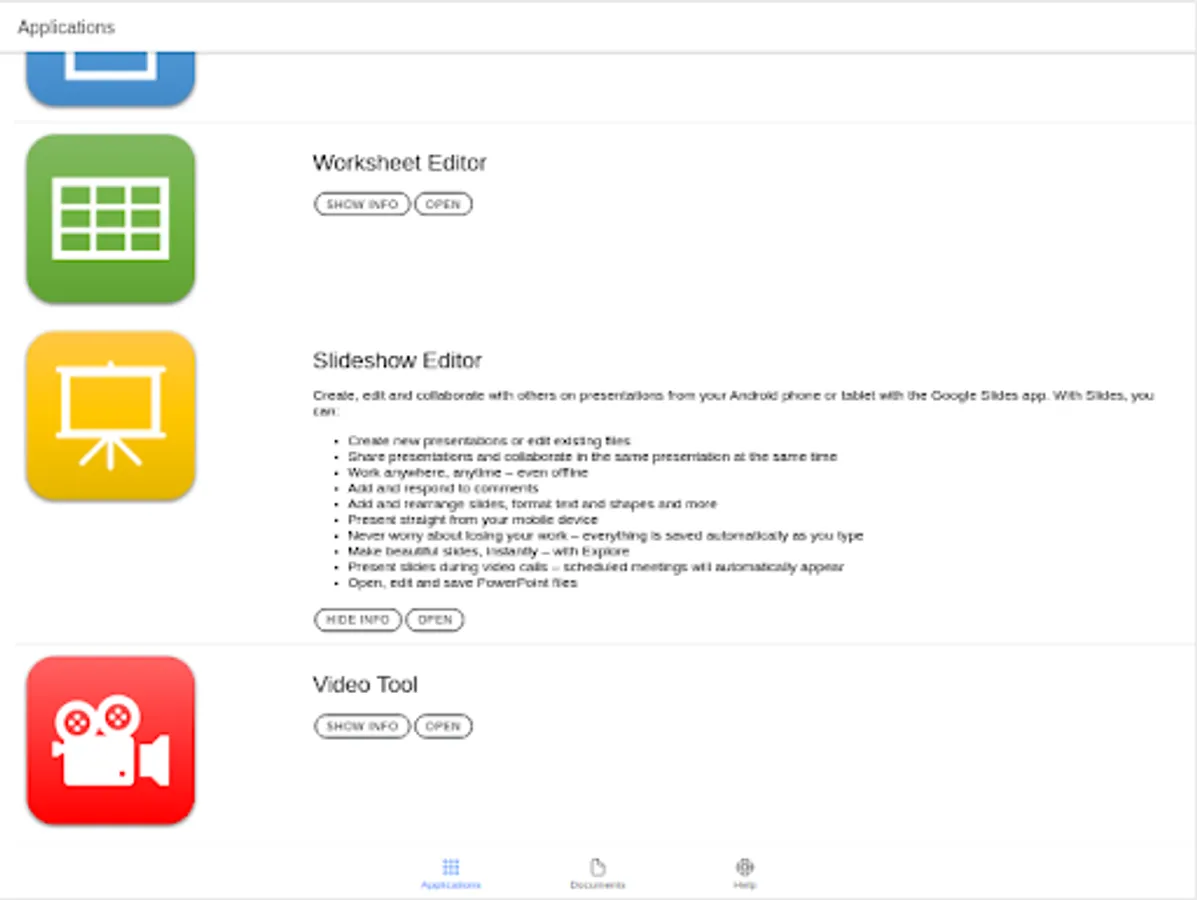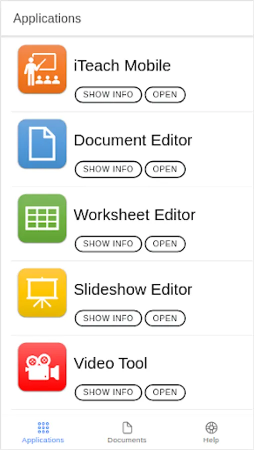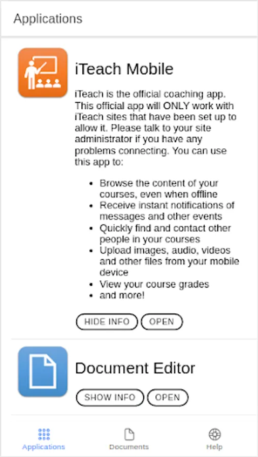 The iTeach Launcher lets you launch your iTeach applications in one location. If the application is missing from your device, it is automatically installed for you.