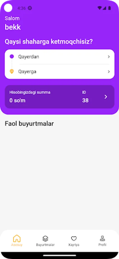 Ushbu dasturda siz bormoqchi bo'lgan yo'nalishingiz chun hamroh topib beramiz.