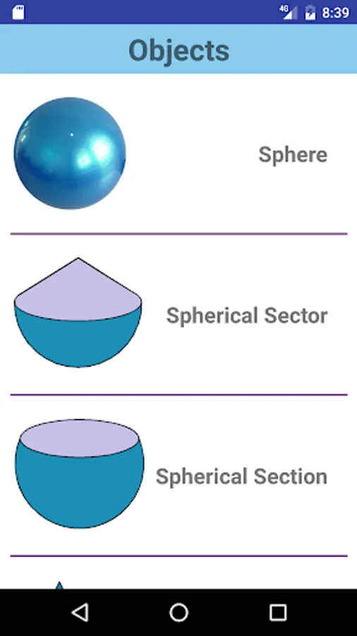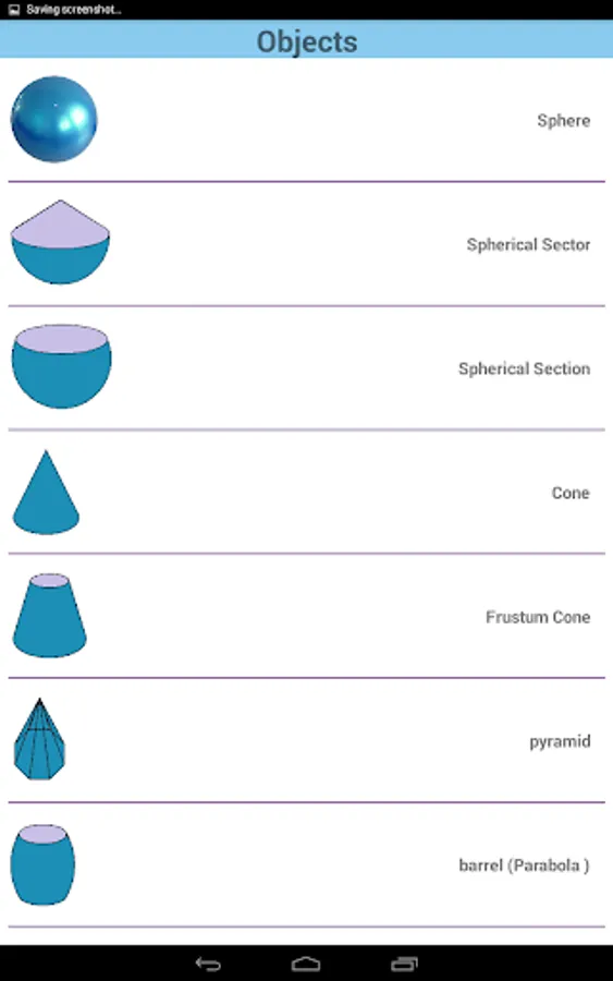 1.This app calculate volume , weight and area for a lot of geometric solids.