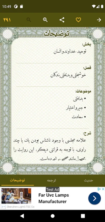 In this applicarion you will rich only first part of al-Kafi, Usul al-Kafi.