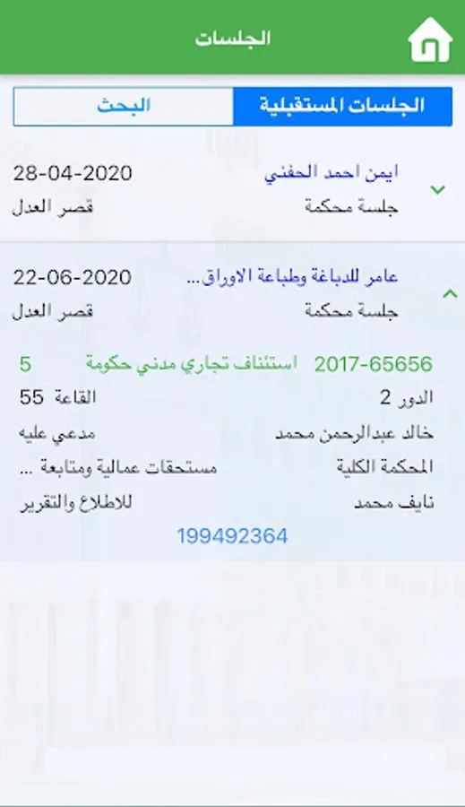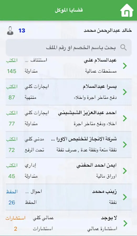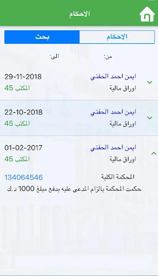 - The ability to search by case number, automatic number, or file number, or according to the opponent's name.