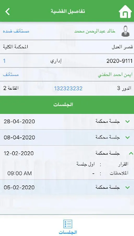 - The possibility of entering the portal of justice directly by pressing the automatic number.