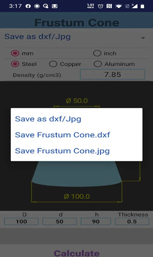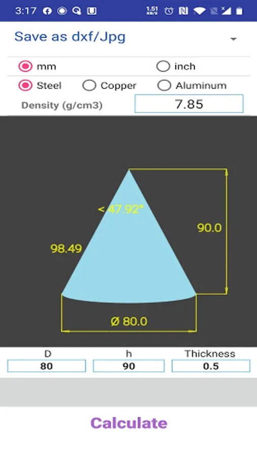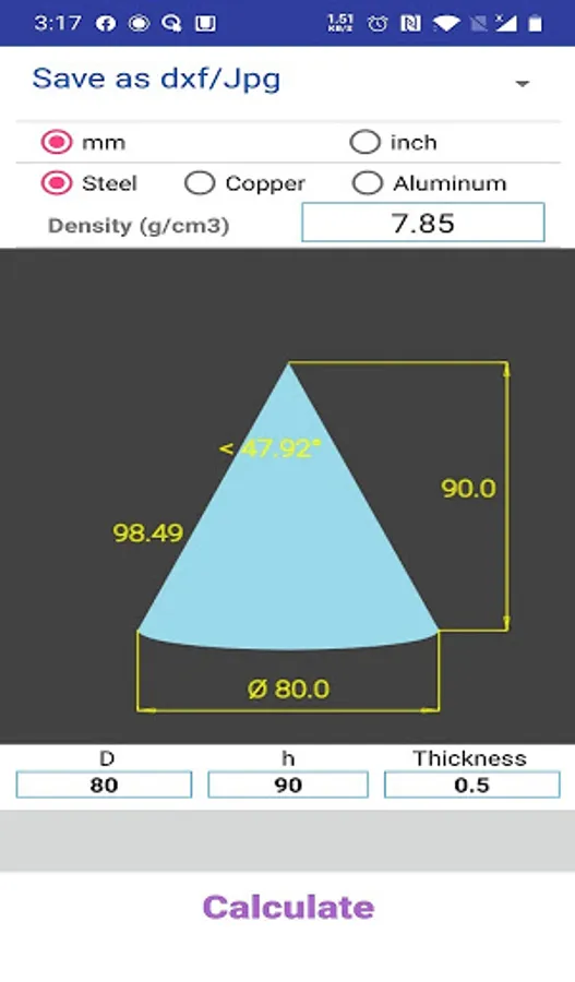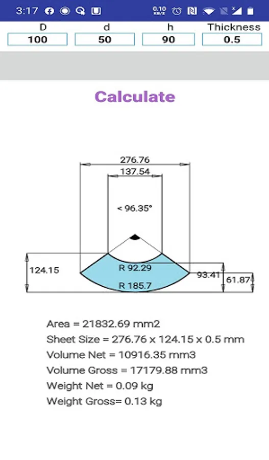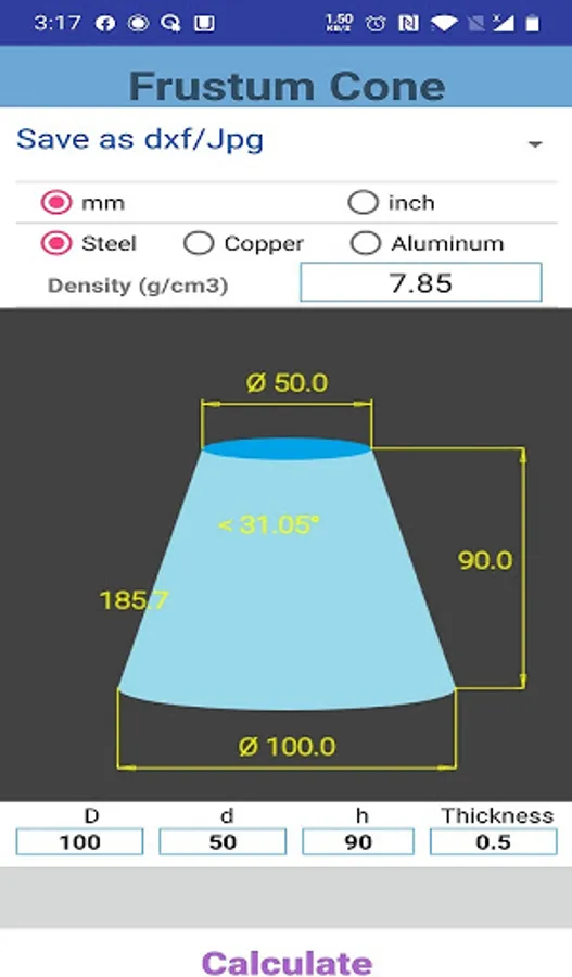 This application is very good tool for student , engineer and technical people to get all information for the cone to make it by using flat steel , aluminum or copper sheet...etc