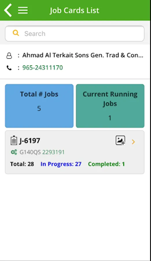 A job card is a detailed description of work that is performed for any customers work order. This module allows the maintenance staff to track customer's job cards every step of the way, and keep them up to date. The administrator can view the details of any job card including the address, contact details and any pertinent information about what all work is required. It also allows them to monitor the status of the job cards (active / closed / completed / canceled) and to allocate available engineers / s to any job card.