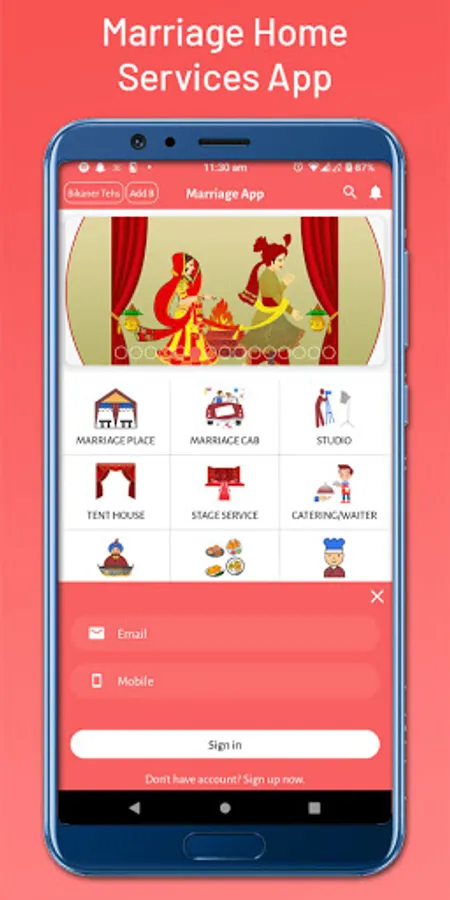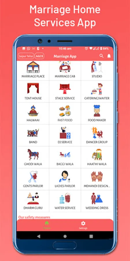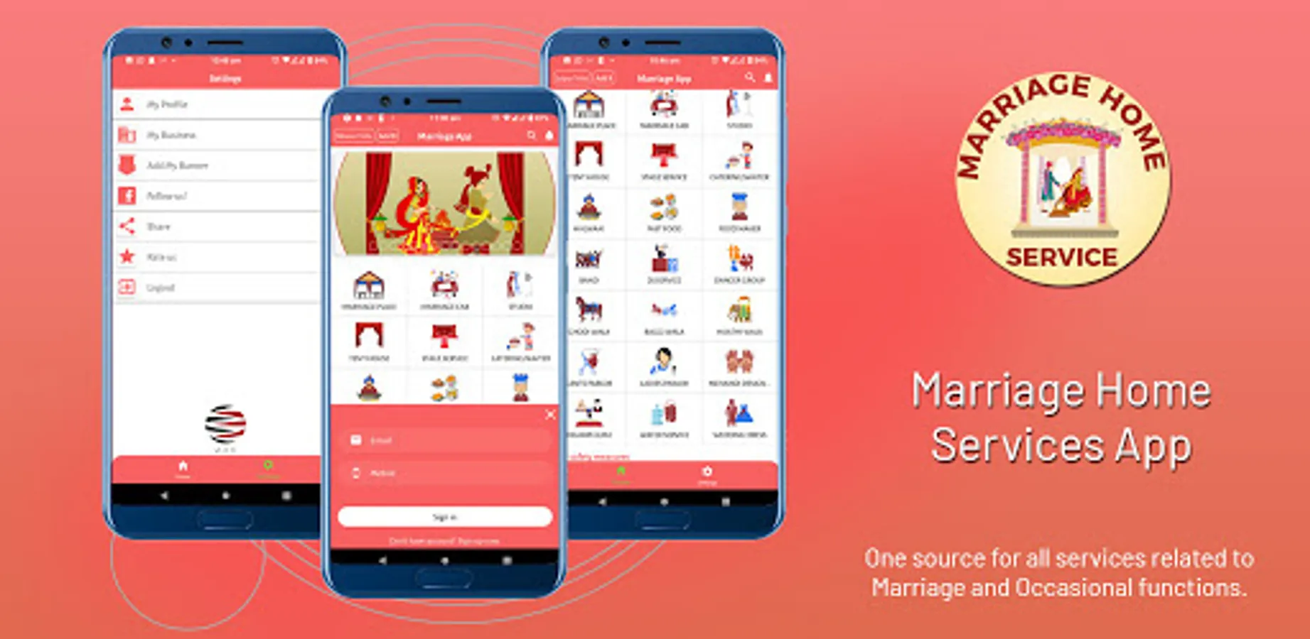 App work as a one-stop solution for all your programs (MARRIAGE, party, event, etc) rented service. whether it is to get information about programs rented service the caters of your area, marriage place, marriage cab, studio, tent service, stage service, catering/waiters, halwai, fast food, food maker, DJ, band, dancer gurp, godi baggi, hathi, jents parlour, ladies parlour, mehandi digainar,dharm guru,water service, wedding dress etc.The million's of rating and reviews posted on MARRIAGE HOME SERVICE by the user's will help you make an informed decision.