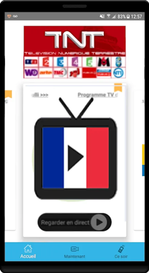 The programs of TNT Direct France channels are accessible from anywhere in France, neither registration nor payment are required.