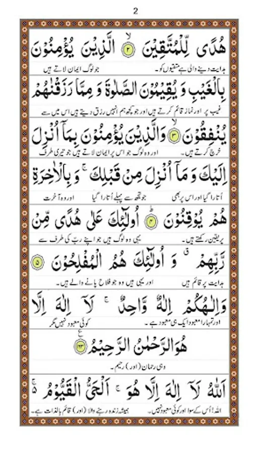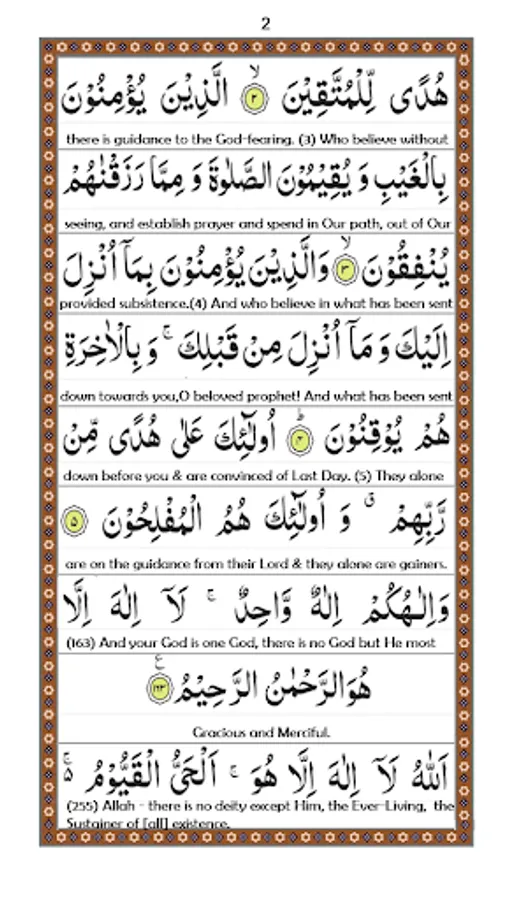 Surah Al-Bakarah (chapter 2): verses 1 to 5, 163, 255 to 257, and 284 to 286