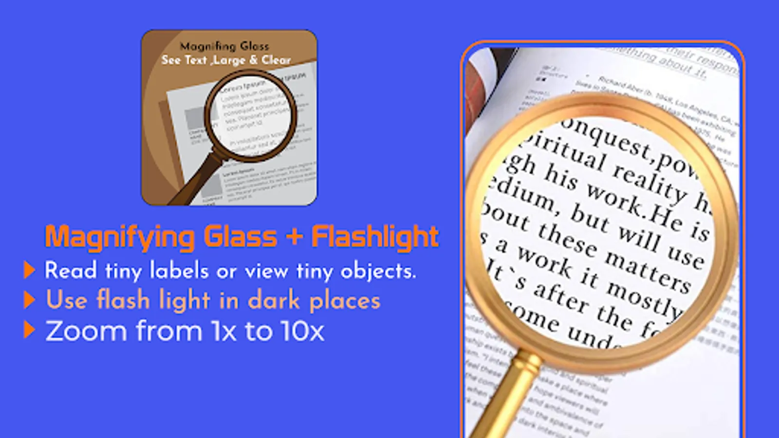 Download Magnifying Glass - Magnifier app now! This all-in-one magnifying glass, flashlight, and camera snapshot app provides everything you need to magnify and read clearly.