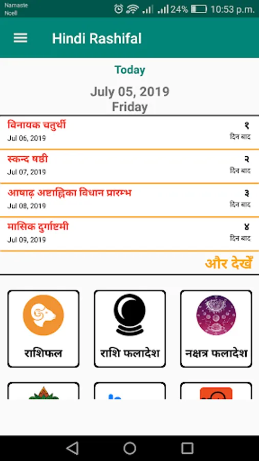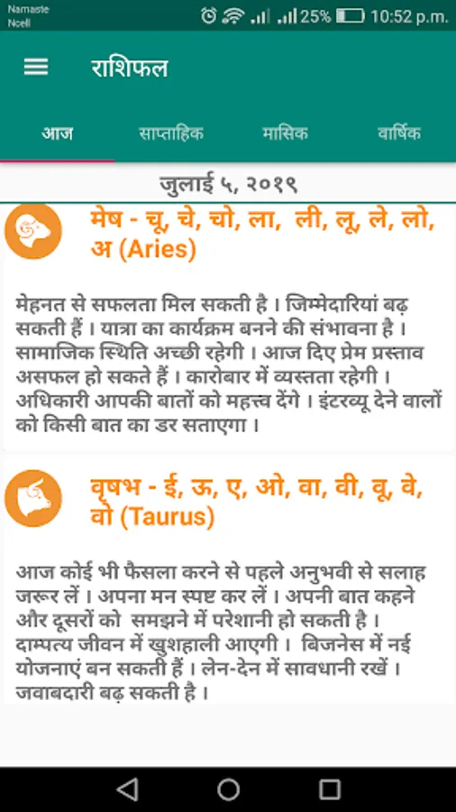 Know your Daily, Weekly, Monthly and Yearly Rashifal Just by installing "Hindi Rashifal” and take advantage of astrology in your daily life. Here you can get information about Daily Rashifal (Daily Horoscope), Rashi Faladesh, Nakshatra Fal, Muhurat, Swapna Phal, Vrat Vidhi, Graha Dasha, Useful Mantra, Jyotish Tips and Upavas and Festivals.