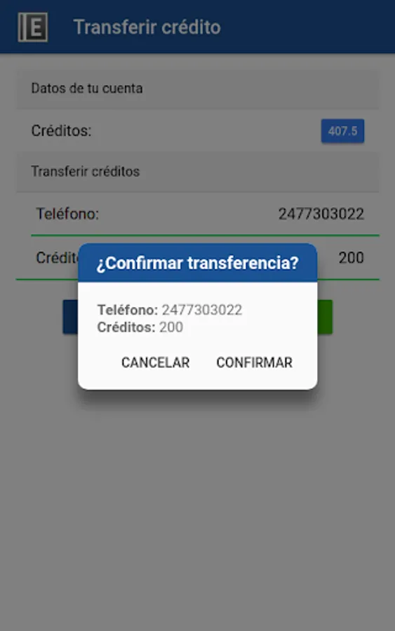 - Transfer money to another account (add credit to a customer)