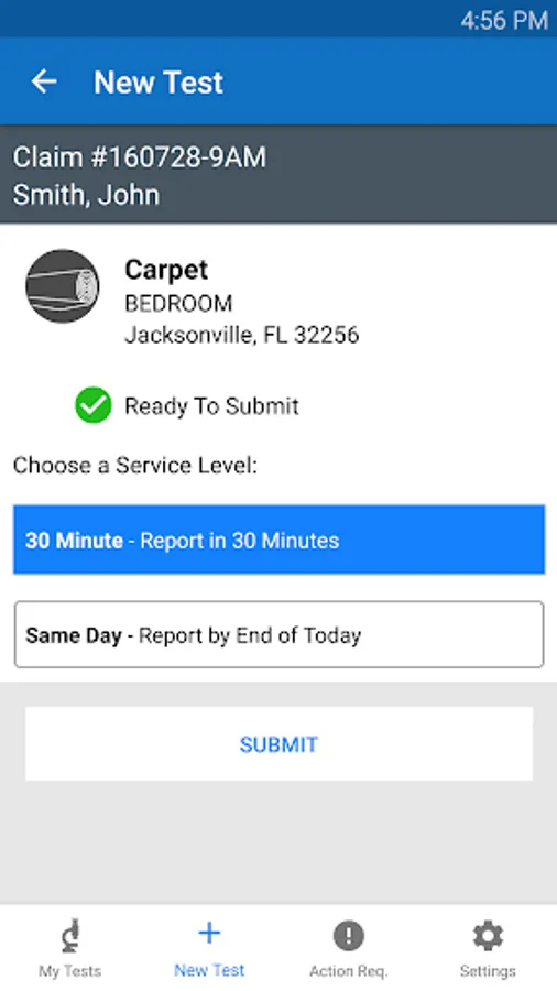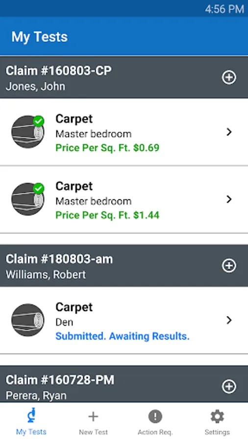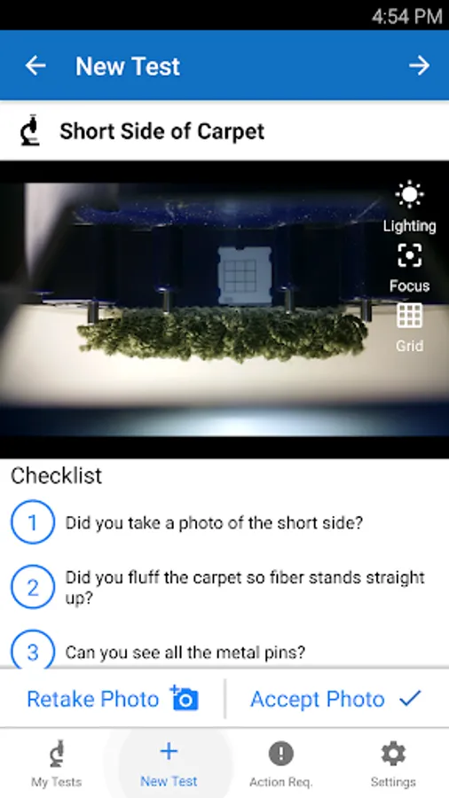 • Test carpet, wood, laminate, vinyl flooring, siding, and roofing in the app and skip sending the sample
