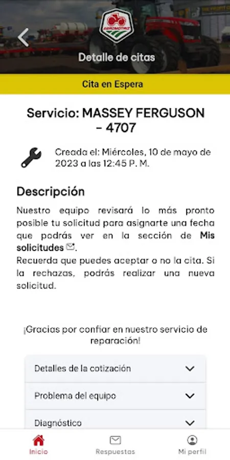 Application for Agromotriz service and repair appointments, you can separately request a quote and have control of the history of appointments and all quotes.