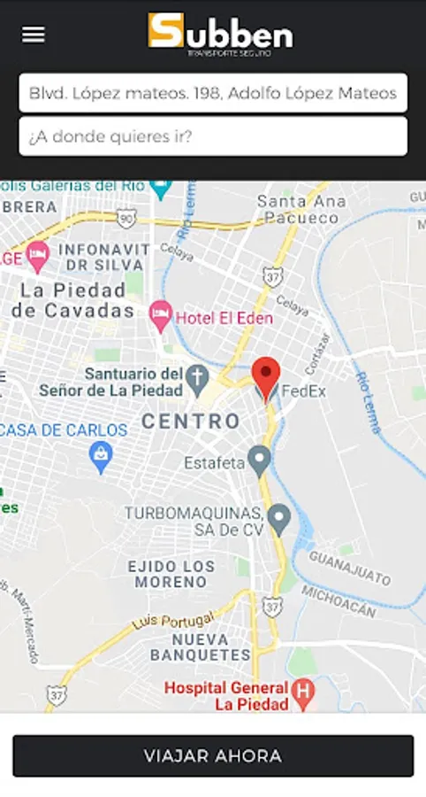 Selecciona tu ubicación y el destino al que quieras llegar.