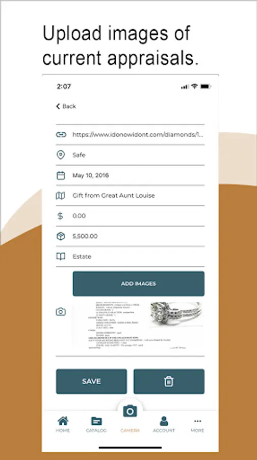 You may wish to get a professional appraisal for some jewelry, artwork, antiques, memorabilia, and hard to replace valuables. Take a photo of appraisal and upload for safekeeping.