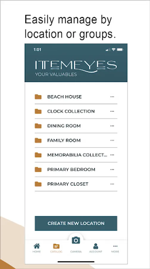 Customize how you want to catalog your valuables so they can be easily located by physical location or by groups.