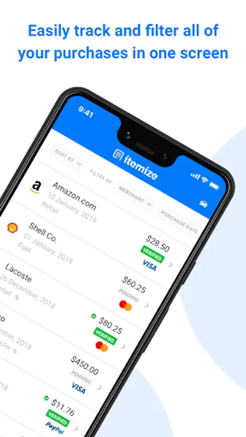 Itemize makes tracking expenses fast and easy. Snap photos of your receipts and expense info is extracted almost immediately - no typing. Connect your email and Itemize automatically stores your digital receipts. Itemize organizes your expenses so you can feel confident throwing away your receipts.