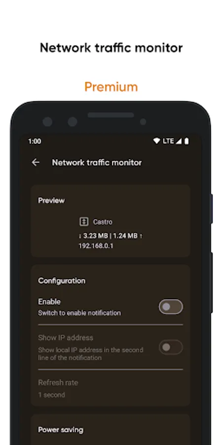 • Network traffic speed monitor to track your connection speed;