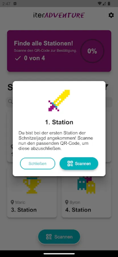 Go on an exciting scavenger hunt with iterAdventure and earn your reward! With the help of the app you can discover events such as trade fairs, conferences and other events in a new way. The iteradventure app sends you on an exciting quest where you have to find all the hidden stations and scan their QR codes to complete the challenge.