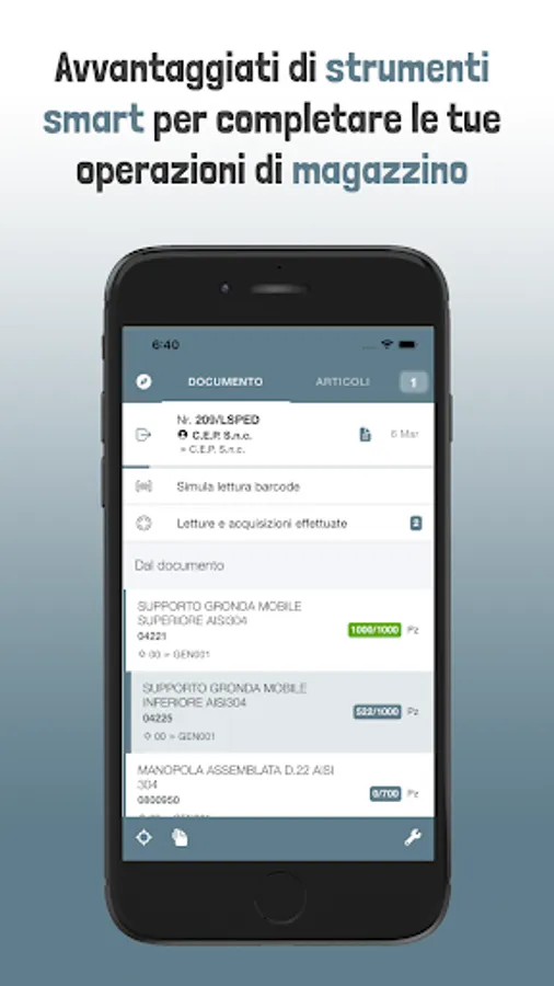 - Many minor support features, as the scan error checking, the quick change of warehouse/site, the serial number univocity, and many more.