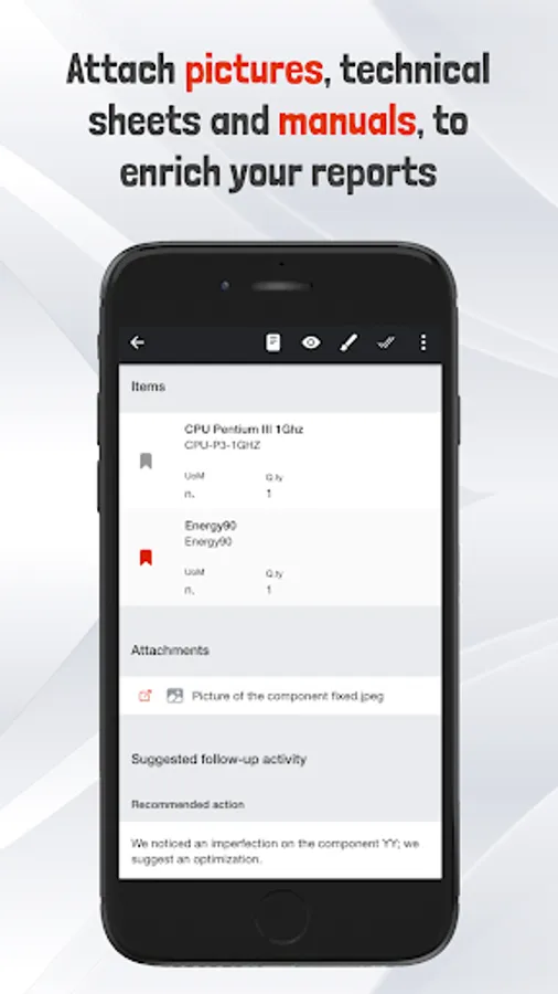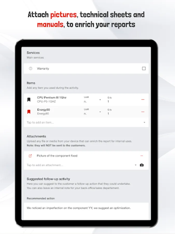 - Attach resources, images, videos and documents to your reports.