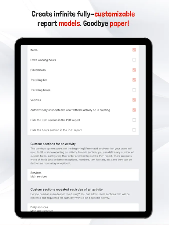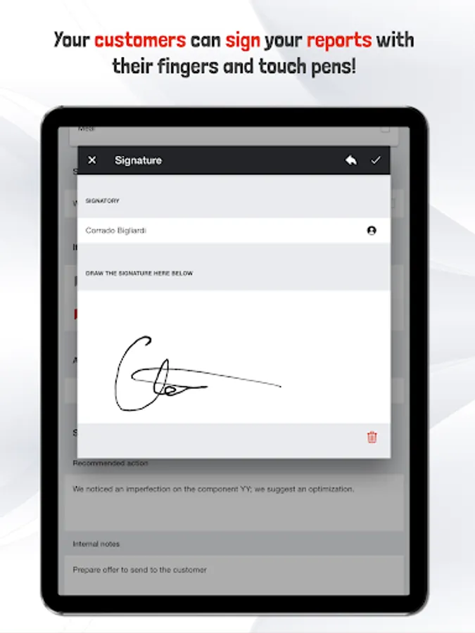 - Your customers will be able to sign your reports with their fingers and touch pens!